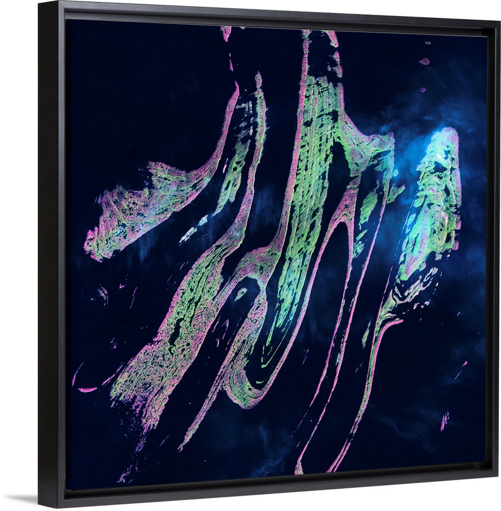 <p>Belcher Islands, satellite image. The Belcher Islands, which were named after the British Admiral Sir Edward Belcher (1799-1877), are located in Hudson Bay, Canada. The islands' only inhabitants live in the small town of Sanikiluaq, near the upper end of the middle island. These rocky islands are too cold to sustain more than low-growing vegetation. Image data obtained by the Landsat 5 satellite on 21 September 2001.</p>