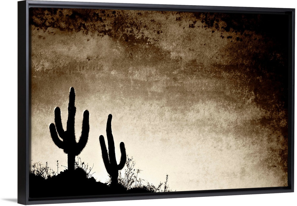 <p>Cacti silhouetted against the afternoon sky in the desert landscape typical of the region near the town of Belen, Catamarca Province, Argentina. The town promotes itself as the Poncho Capital of Argentina, and there are many excellent workshops in the town and many ponchos for sale in the shops (some of them quite expensive).</p>