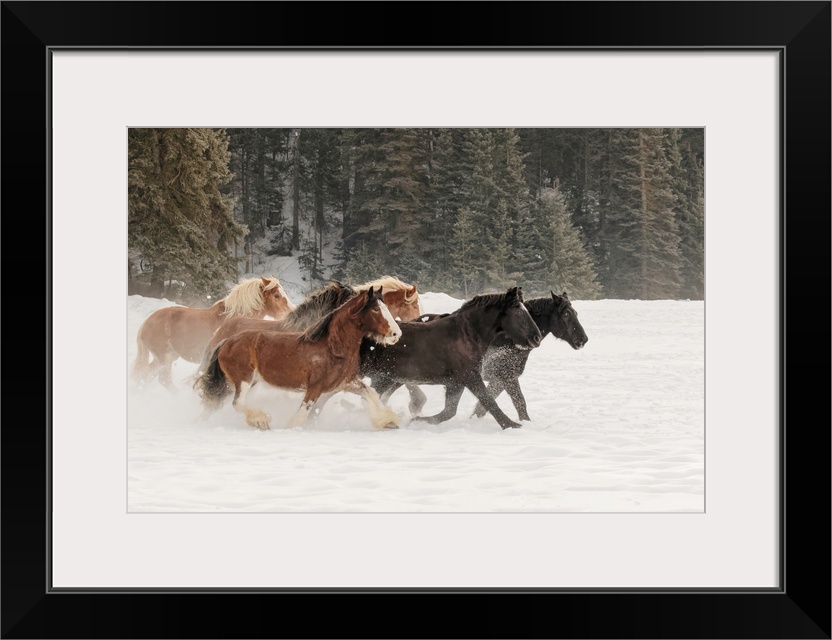 <p>Belgian Horse roundup in winter, Kalispell, Montana. Equus ferus caballus</p>
