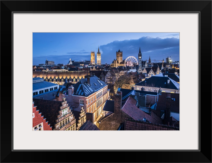<p>Belgium, Flanders, Ghent, Night view of the town center</p>