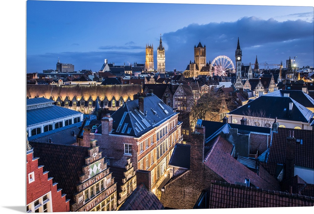 <p>Belgium, Flanders, Ghent, Night view of the town center</p>