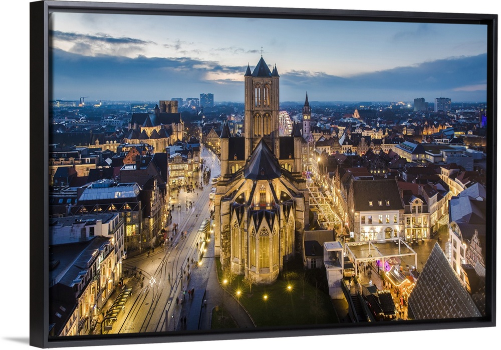 <p>Belgium, Flanders, Ghent, St. Nicholas church at dusk.</p>