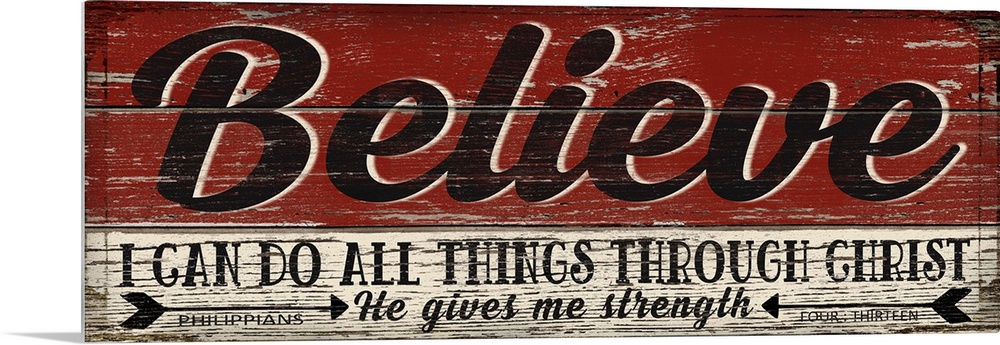 <p>Weathered sign that reads "Believe - I can do all things through Christ; He gives me strength."</p>
