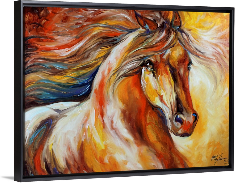 <p>Contemporary painting of a horse in action with a flowing mane.</p>