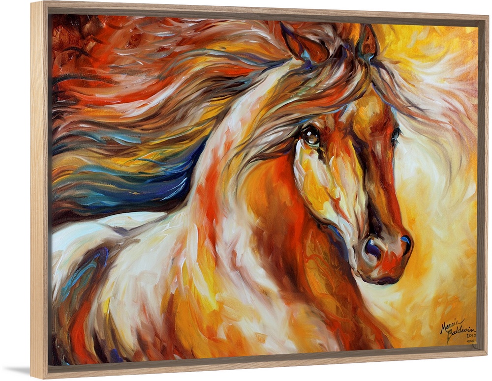 <p>Contemporary painting of a horse in action with a flowing mane.</p>