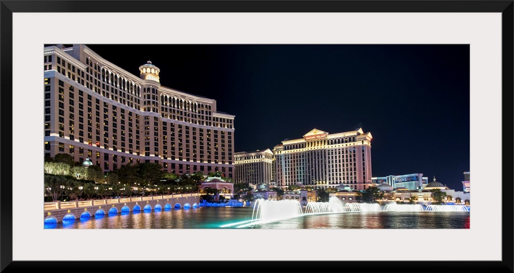 <p>Photograph of the Bellagio Water Show outside of the Bellagio and Caesar's Palace in Las Vegas, NV.</p>