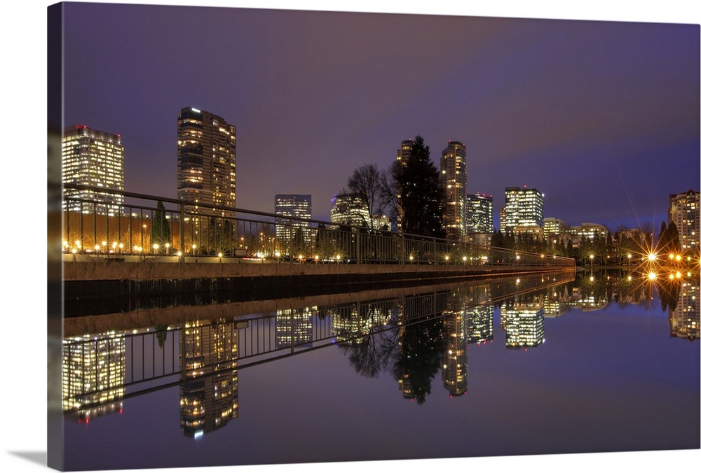 <p>This is a view of Downtown Bellevue from Downtown Park. This was a four minute exposure taken from the top of the fountain.</p>