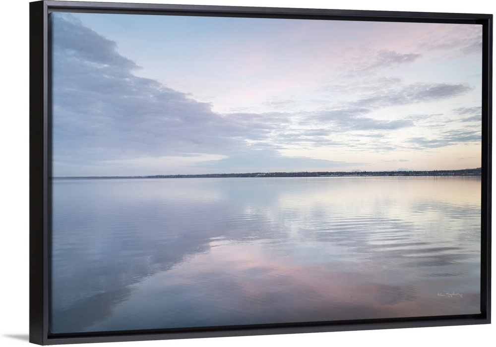 <p>Clouds reflected in calm waters of Bellingham Bay Washington.</p>