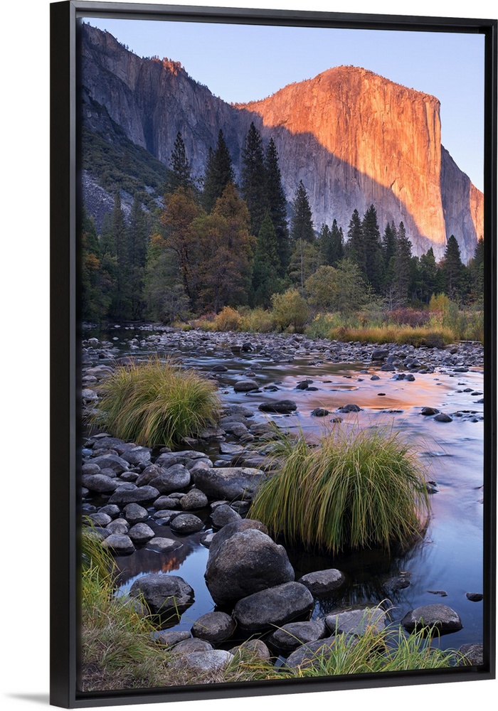 <p>Warm sunlight hitting El Capitan at dusk over the River Merced in Yosemite.</p>