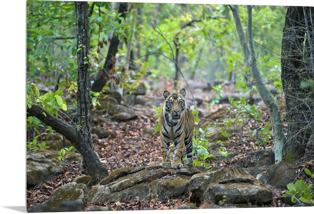 <p>Tiger .Panthera tigris.18 month old cub (s).Bandhavgarh National Park, India.*Endangered species</p>