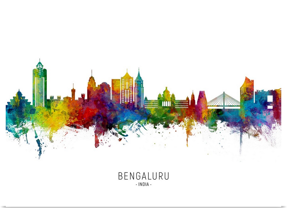 <p>Watercolor art print of the skyline of Bengaluru, India</p>