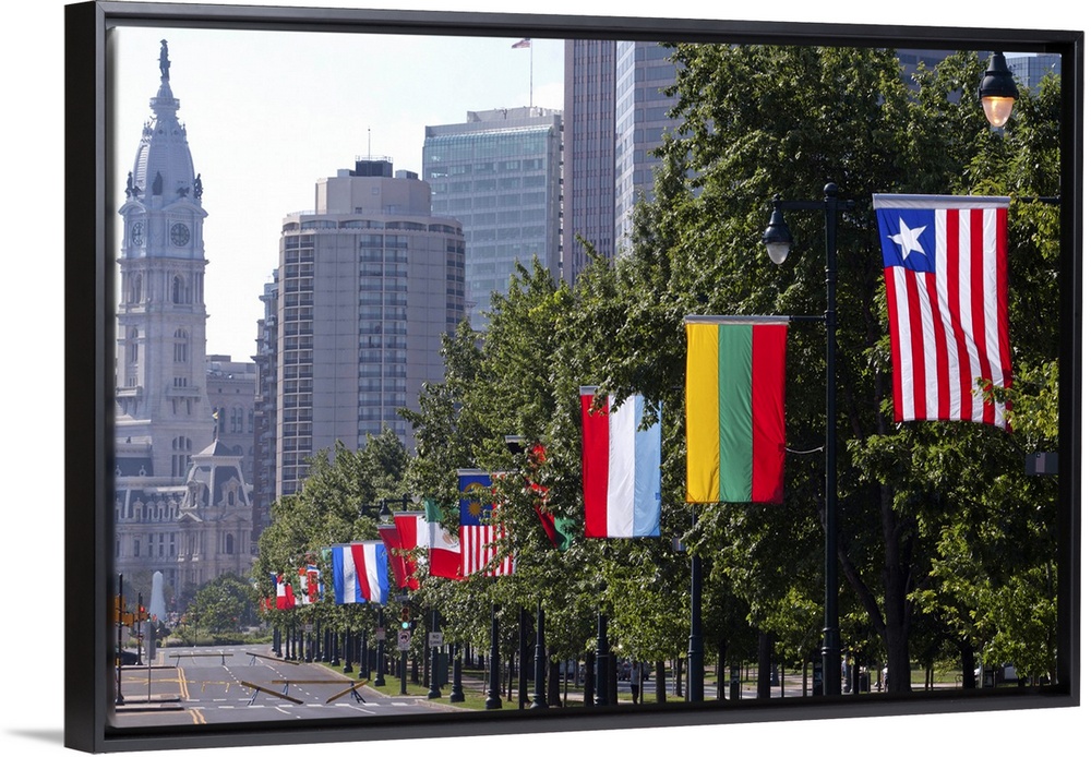 <p>National flags of various countries at Benjamin Franklin Parkway, Philadelphia, Pennsylvania, USA</p>