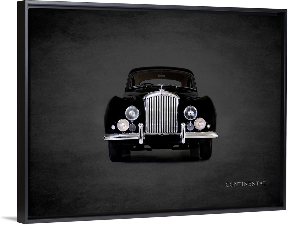<p>Photograph of a black 1952 Bentley Continental printed on a black background with a dark vignette.</p>