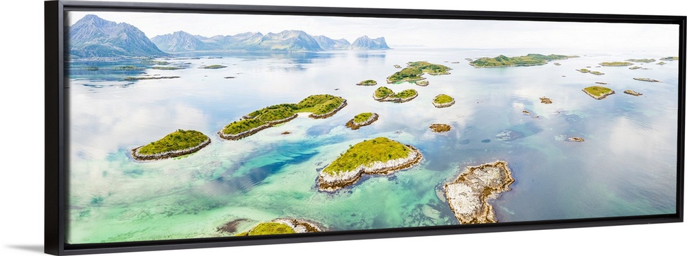 <p>Aerial view of Bergsoyan Islands in the emerald transparent water of the fjord, Senja, Troms county, Norway, Scandinavia, Europe</p>