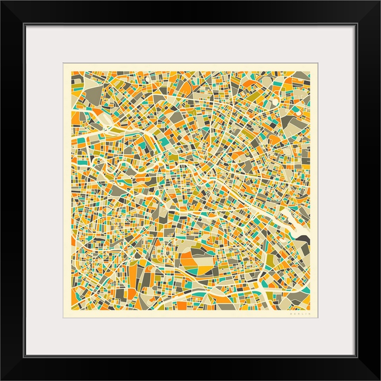 <p>Colorfully illustrated aerial street map of Berlin, Germany on a square background.</p>