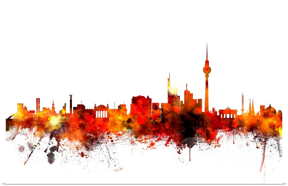 <p>Contemporary piece of artwork of the Berlin skyline made of colorful paint splashes.</p>