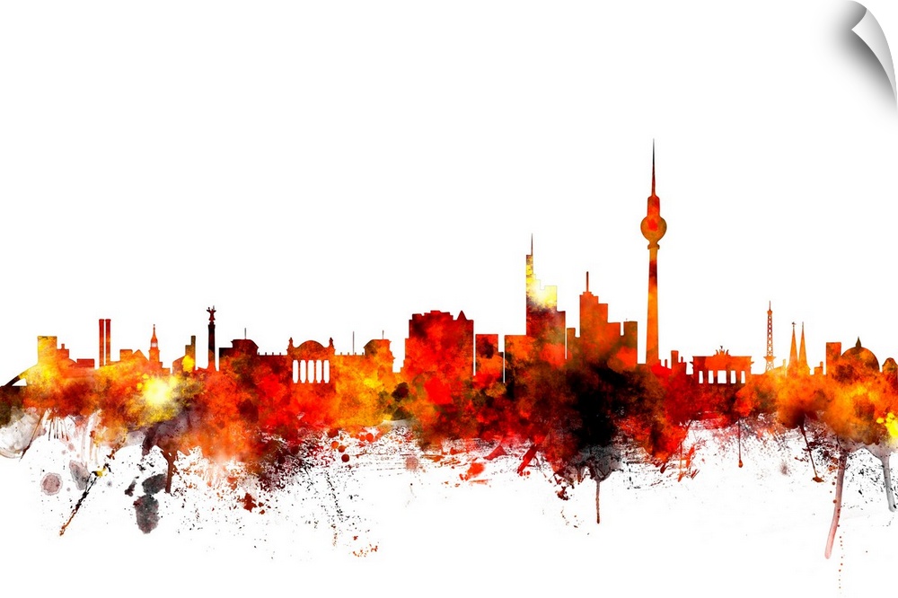<p>Contemporary piece of artwork of the Berlin skyline made of colorful paint splashes.</p>