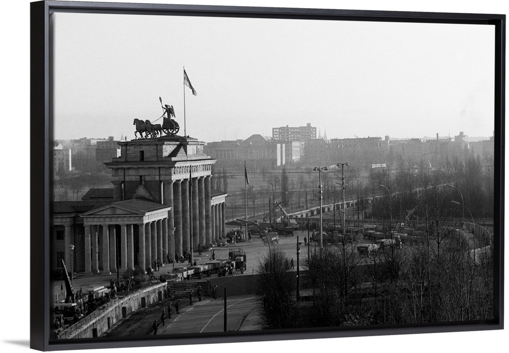 <p>11/20/1961-Berlin, Germany- East German soldiers, policemen, militiamen and other workers labored through the night Nov. 19th through 20th to erect this new wall before the Brandenburg Gate. They turned the Communist refugee wall into a fortification designed to withstand a Western attack. The first wall was built August 13th to keep the East Germans in, an Allied official said. The new work is obviously aimed at keeping people out.</p>