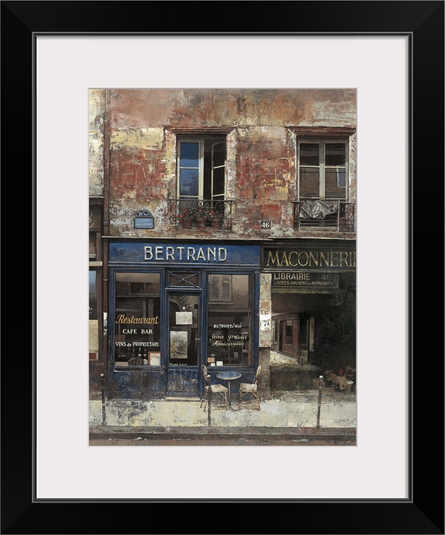 <p>Contemporary painting of a restaurant storefront downtown in a city.</p>