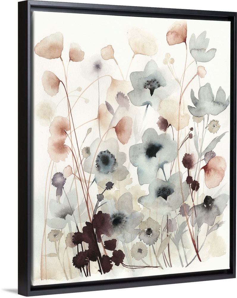 <p>Watercolor painting of a flower bed with pastel wildflowers.</p>
