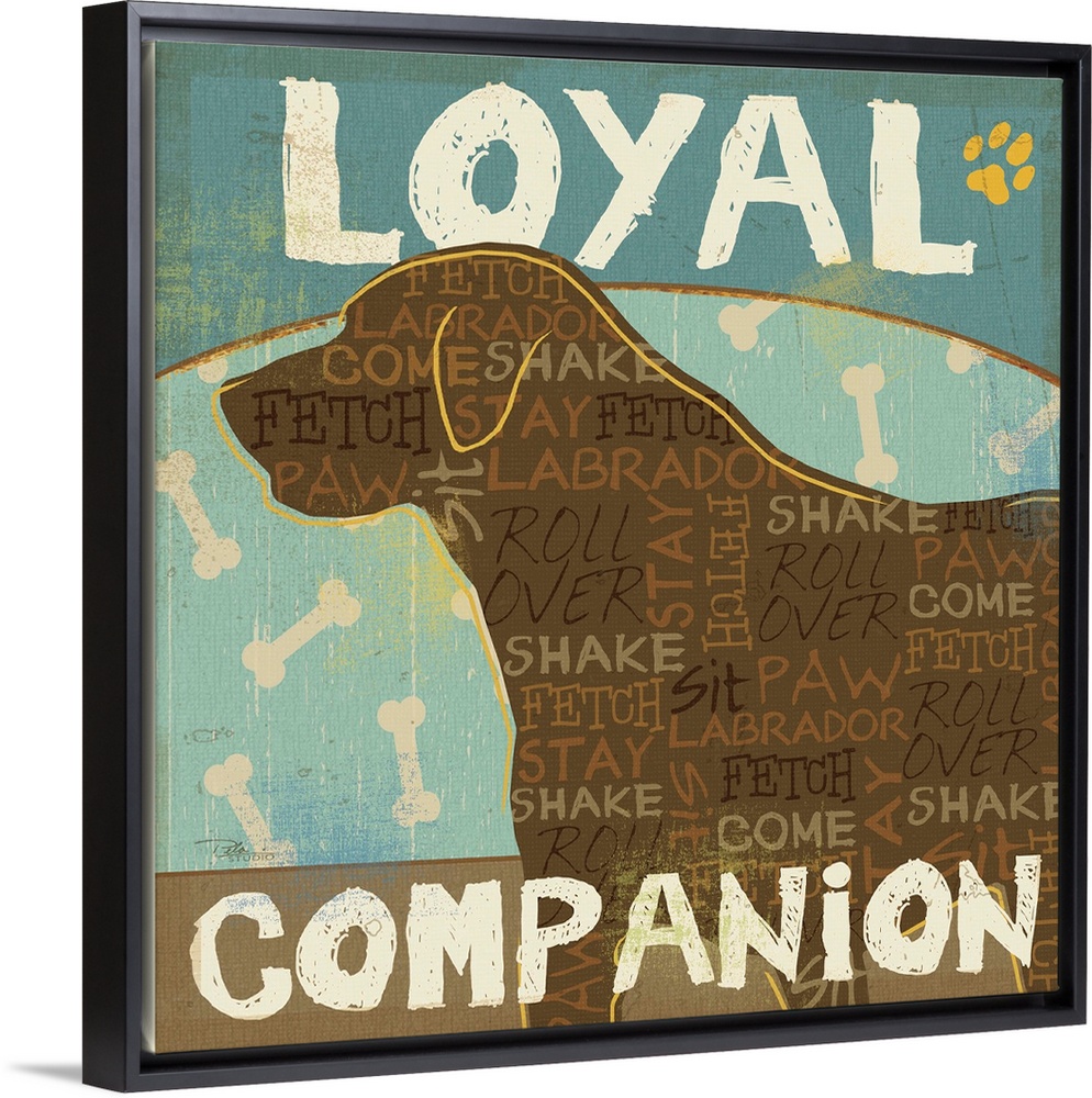 <p>Contemporary artwork of a dog's silhouetted filled in with text, against a background of dog bones.</p>
