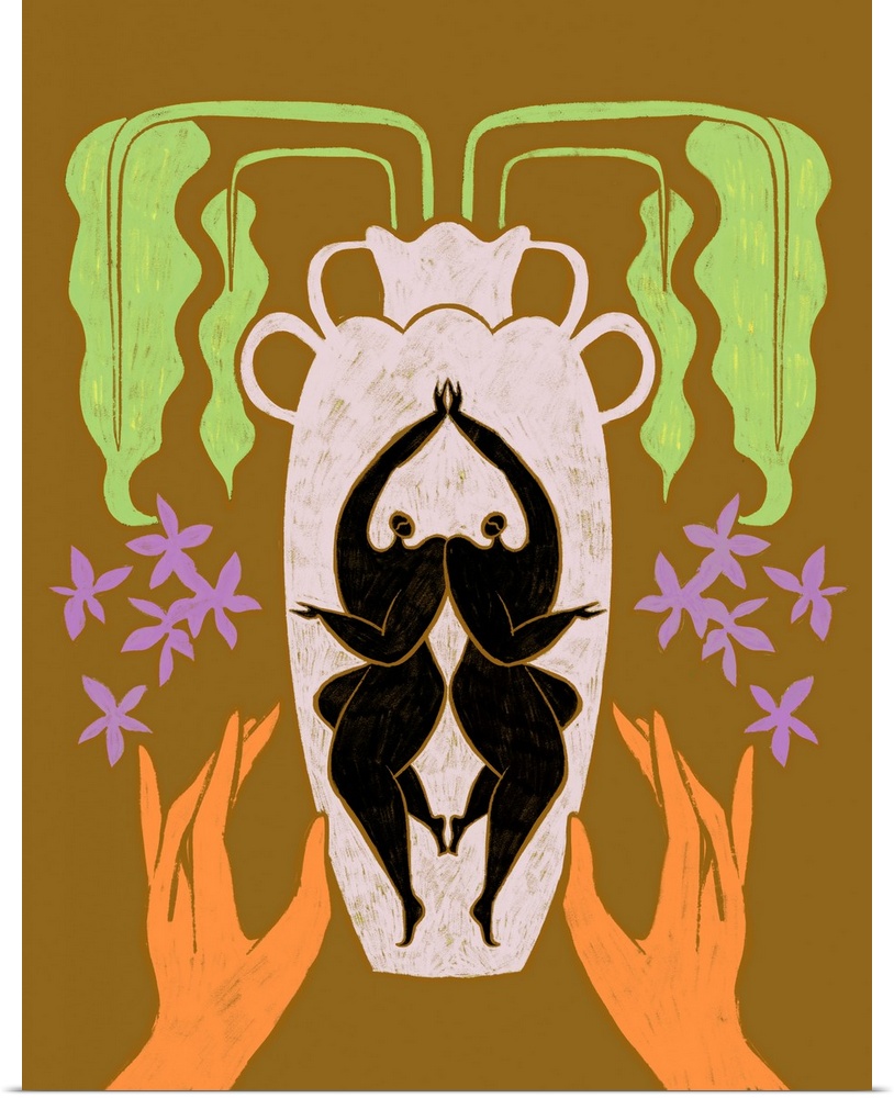 Vases and Urns Art Bohemian Contemporary Art Art For Your Zodiac Gemini Florals Graphic Art Green Wall Art Arty Guava