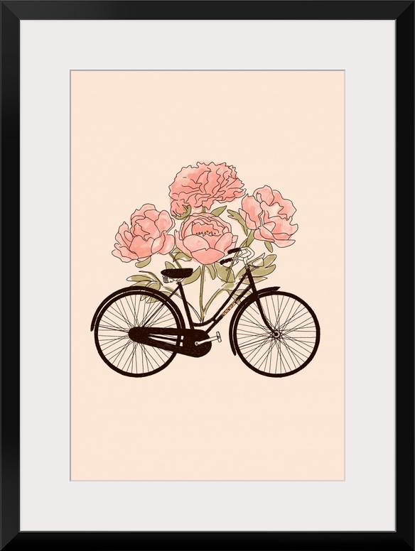 Art Florent Bodart Contemporary Art Plants and Flowers Florals Graphic Art Pink Wall Art Transportation Bicycle