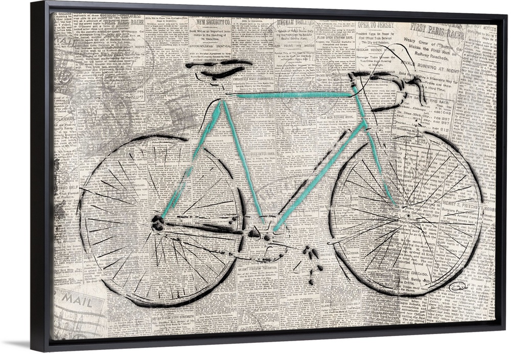 <p>Image of a bicycle on weathered news print.</p>