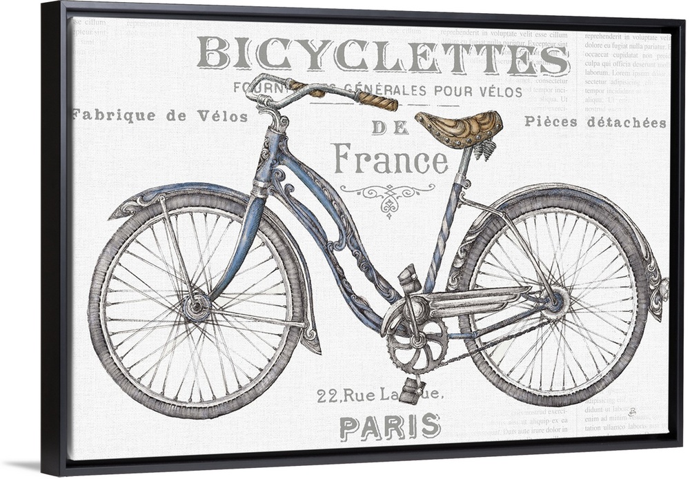 <p>French vintage style bicycle advertisement with French text.</p>