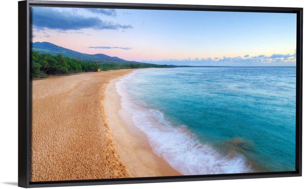 <p>Landscape photograph of an empty beach scene with crystal blue water in Maui.</p>