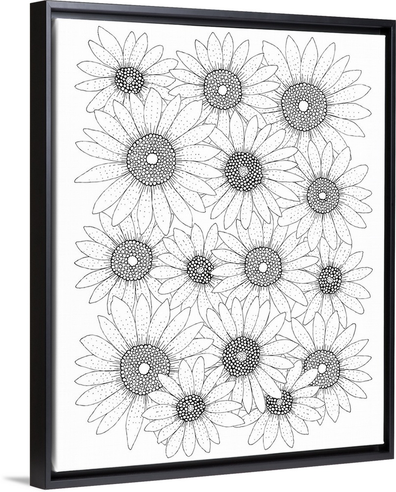 <p>Black and white line art of sunflowers.</p>