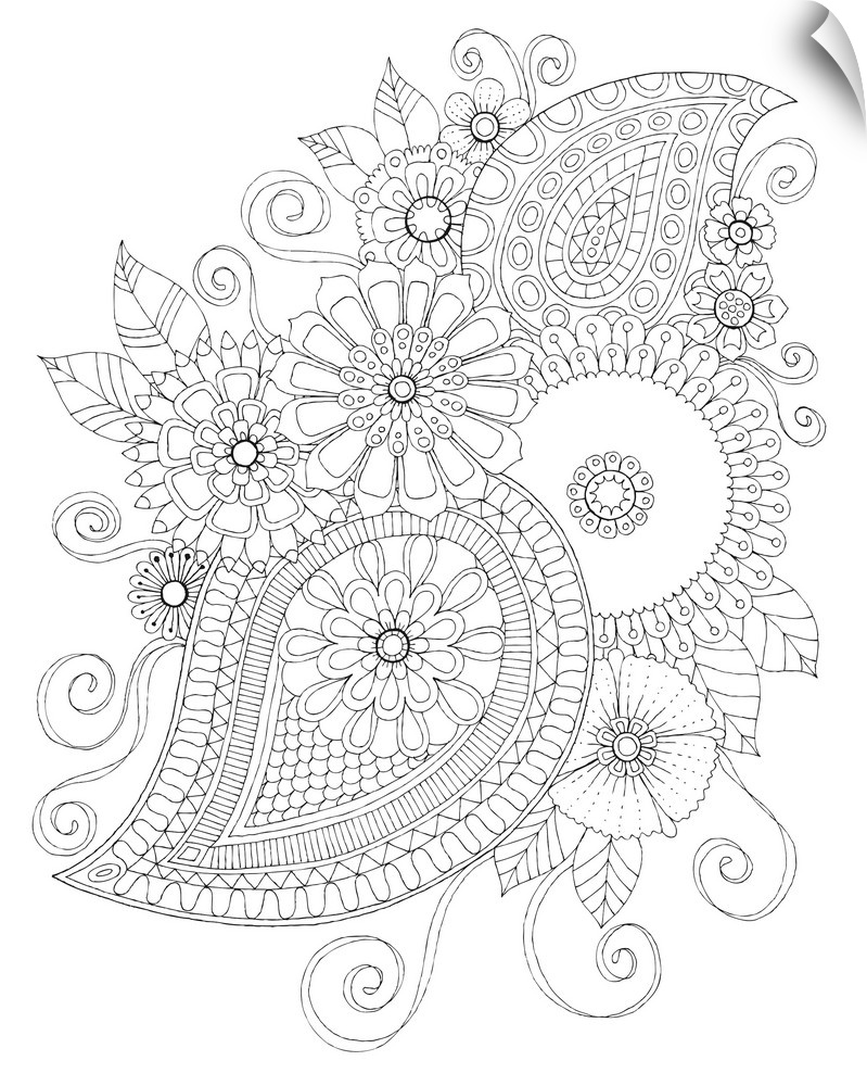 <p>Black and white line art of intricately designed flowers and leaves.</p>