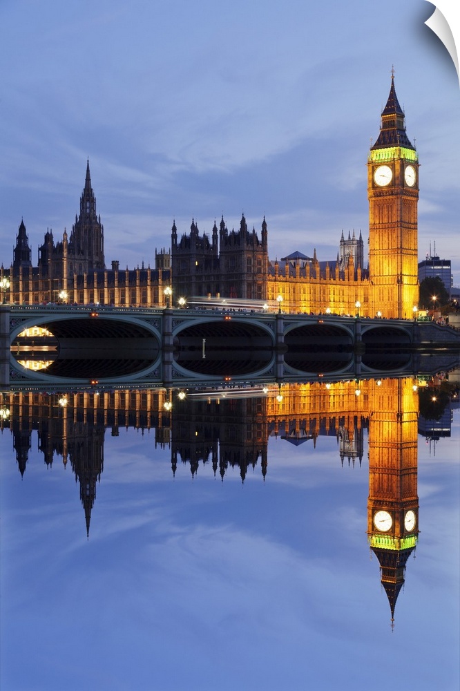 <p>Big Ben and the Houses of Parliament, UNESCO World Heritage Site, and Westminster Bridge reflected in the River Thames, London, England, United Kingdom, Europe</p>