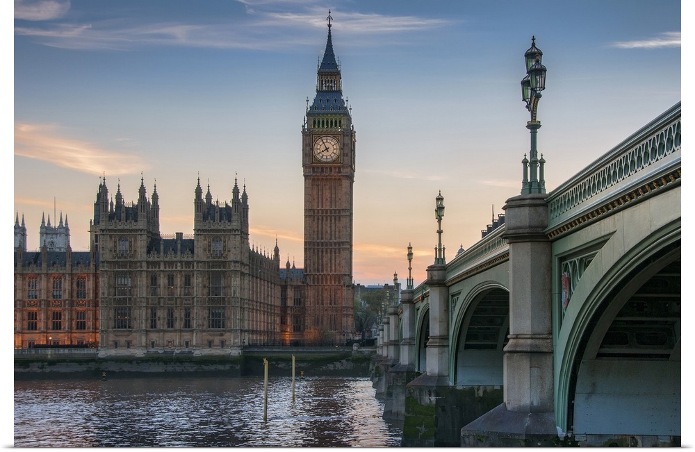 <p>Big Ben and Westminster bridge at dusk.</p>