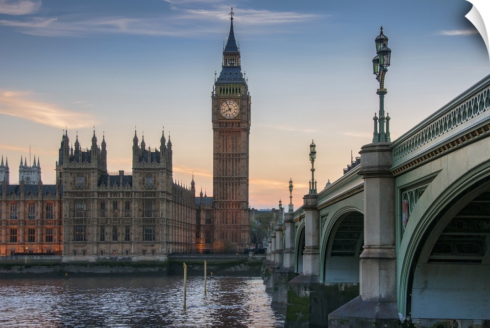 <p>Big Ben and Westminster bridge at dusk.</p>