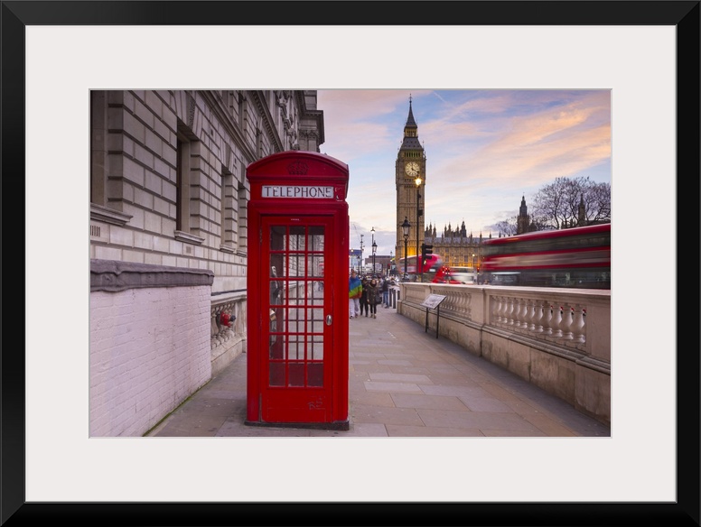 <p>Big Ben, Houses of Parliament and a red phone box, London, England.</p>