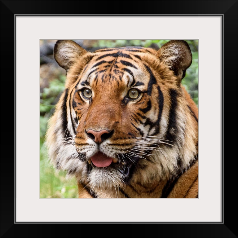 <p>Portrait of a large tiger with a curious expression.</p>