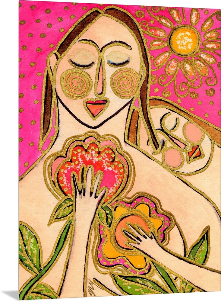 Art Wyanne Art Decorative Art Florals Painting People Figurative Pink Wall Art Watercolor