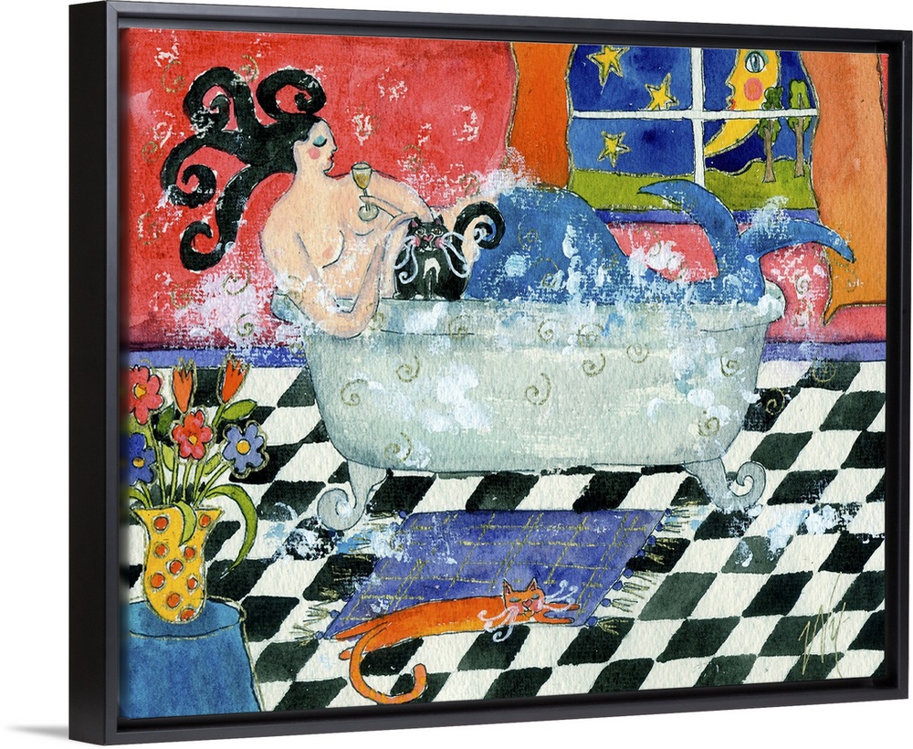<p>A mermaid in a bathtub in the evening.</p>