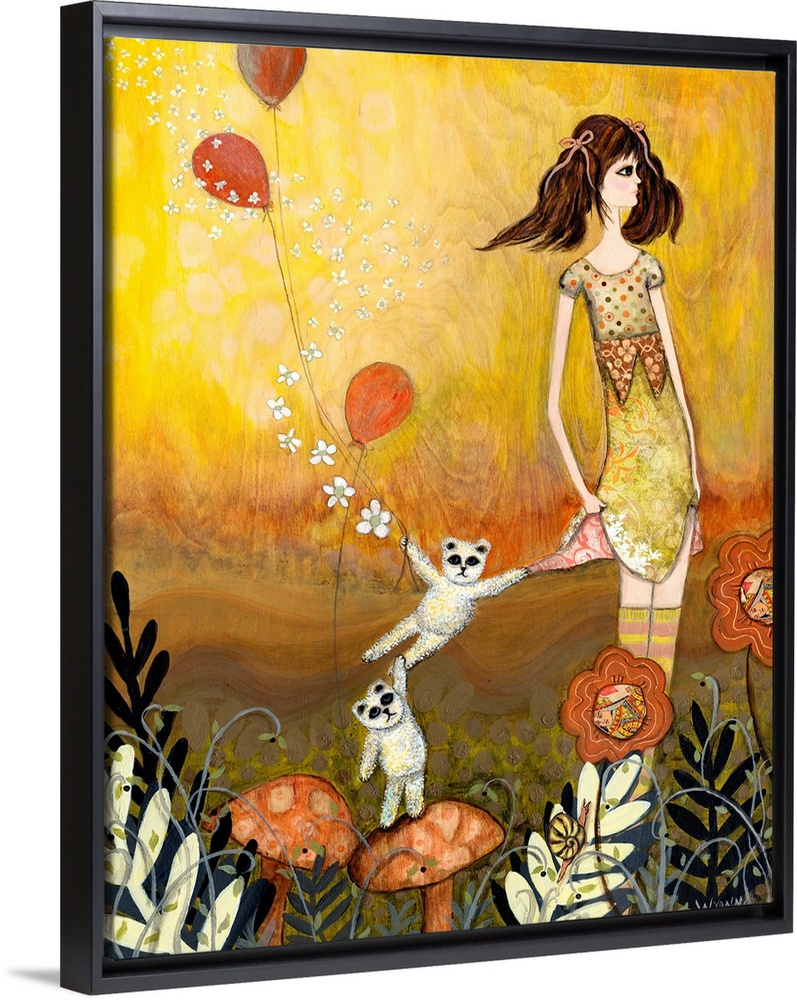 Art Wyanne Art Decorative Art Florals Mushrooms Mixed Media Art Painting People Figurative Watercolor Yellow Wall Art