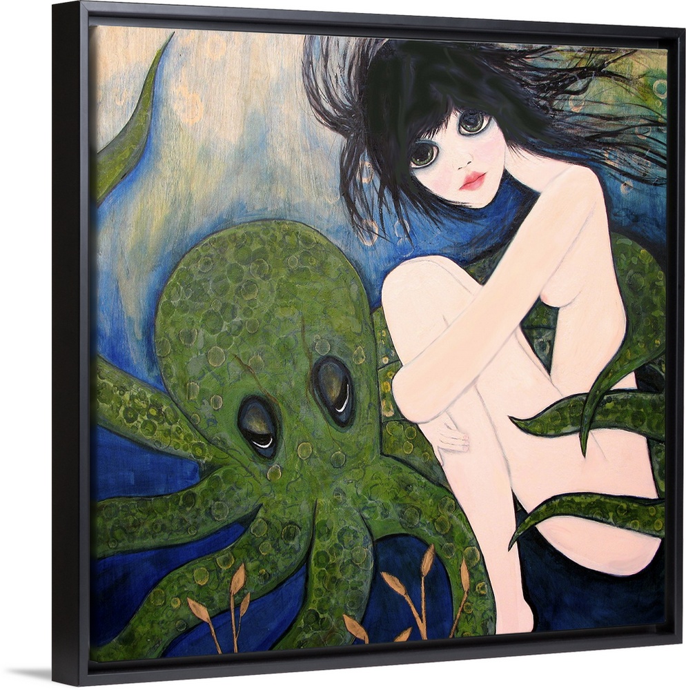 Art Wyanne Art Decorative Art Green Wall Art Mixed Media Art Painting People Figurative Nude Wildlife Marine Life Octopus and Squid