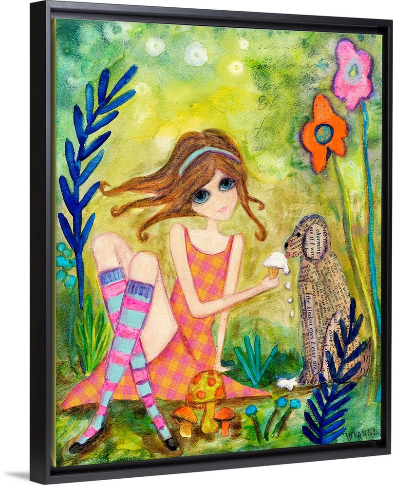 Art Wyanne Art Decorative Art Florals Green Wall Art Mixed Media Art Painting People Figurative Watercolor Wildlife Dog