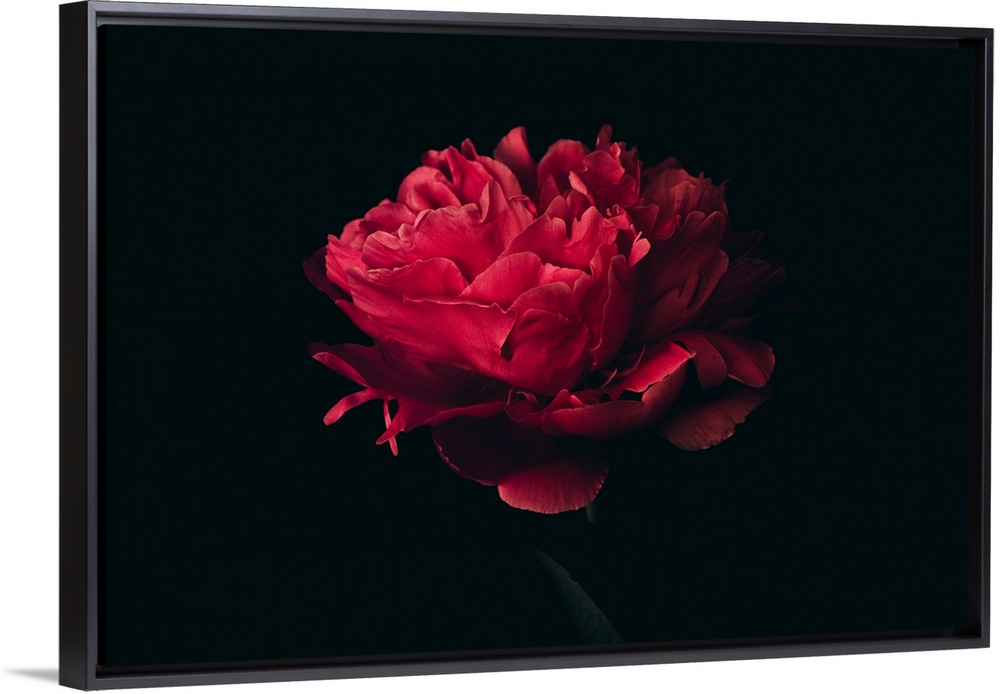 <p>Big head of red peony on a black background</p>