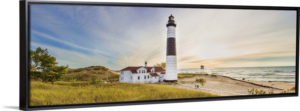<p>Lighthouse on the coast, Big Sable Point Lighthouse, Lake Michigan, Ludington, Mason County, Michigan, USA.</p>