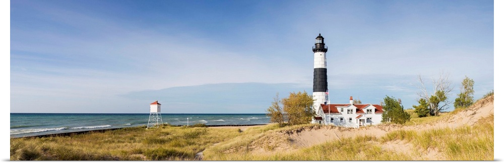 <p>Lighthouse on the coast, Big Sable Point Lighthouse, Lake Michigan, Ludington, Mason County, Michigan, USA.</p>