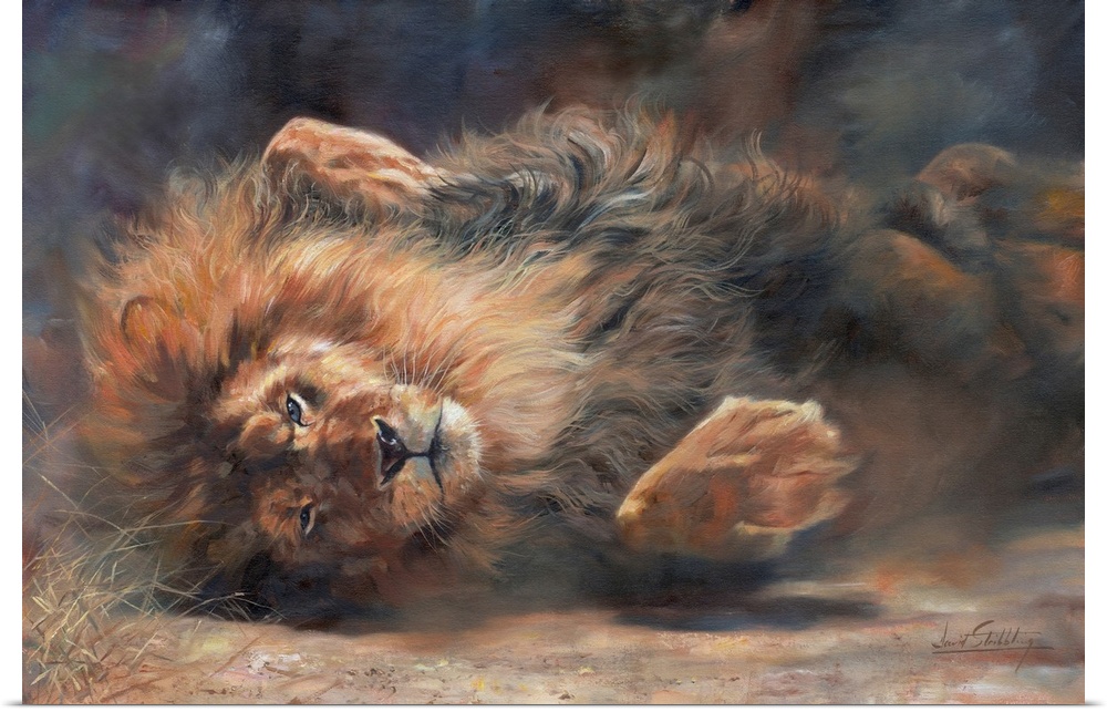 <p>Lion having a dust bath. Originally oil on canvas.</p>