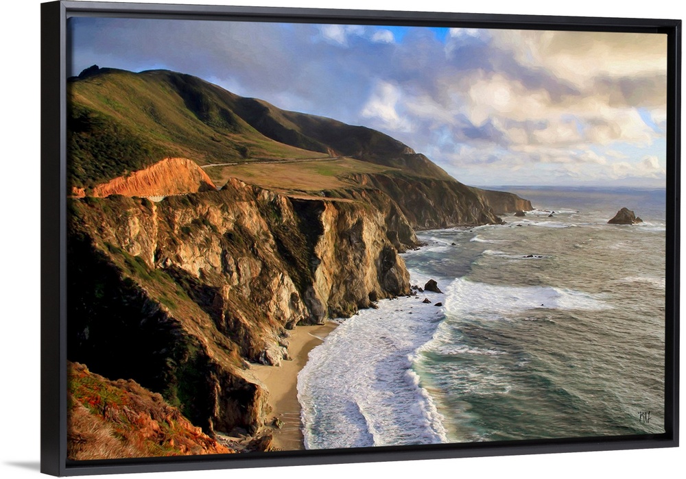 <p>A view from the spectacular mountains and cliffs just south of the Bixby Bridge in Big Sur. Acclaimed artist Michael Lynberg adds an impressionistic touch to his work, making each piece unique, alluring and ideal for collectors who love the realism of photography and the subtle beauty of an artist's brushstrokes.</p>