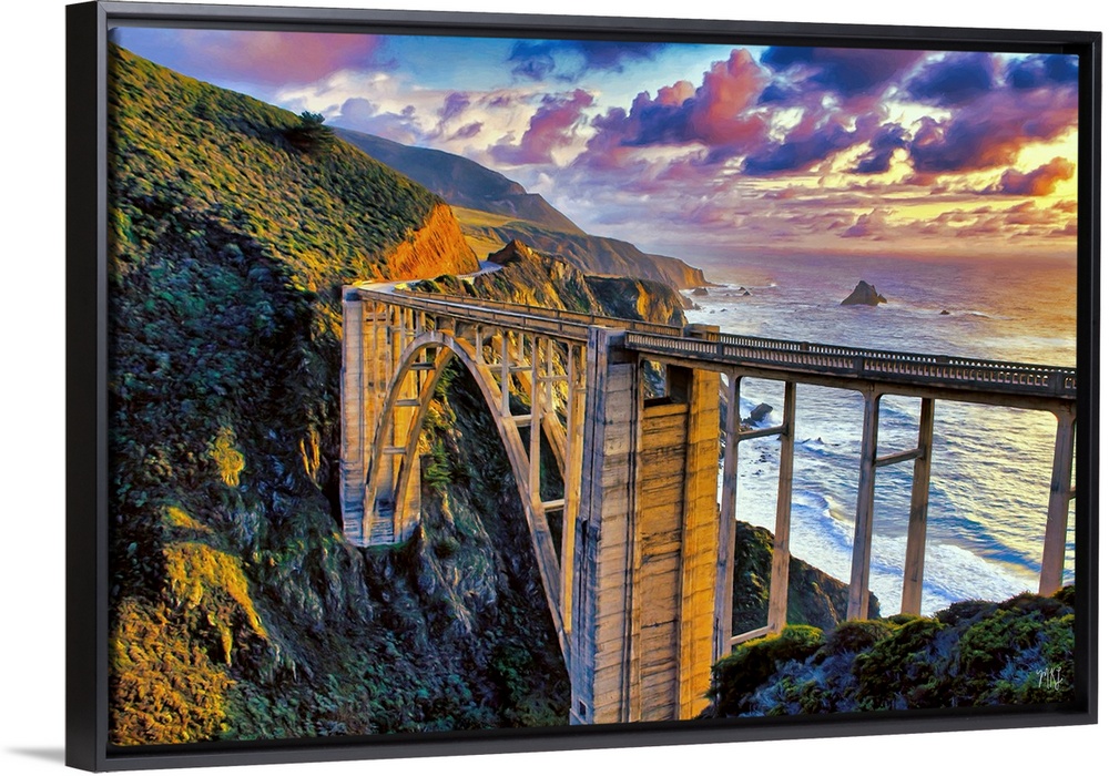 <p>A spectacular view of the Bixby Bridge (built in 1932) and Highway One in Big Sur. Michael Lynberg's stunning works of photo-impressionism capture the breathtaking Big Sur coastline in unique and captivating ways, adding beauty and inspiration to the collector's home.</p>