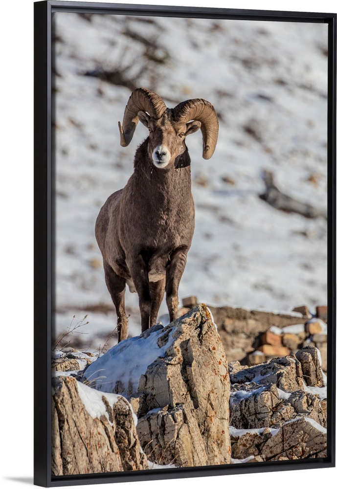 <p>Bighorn sheep ram in ealry winter in Glacier National Park, Montana, USA</p>