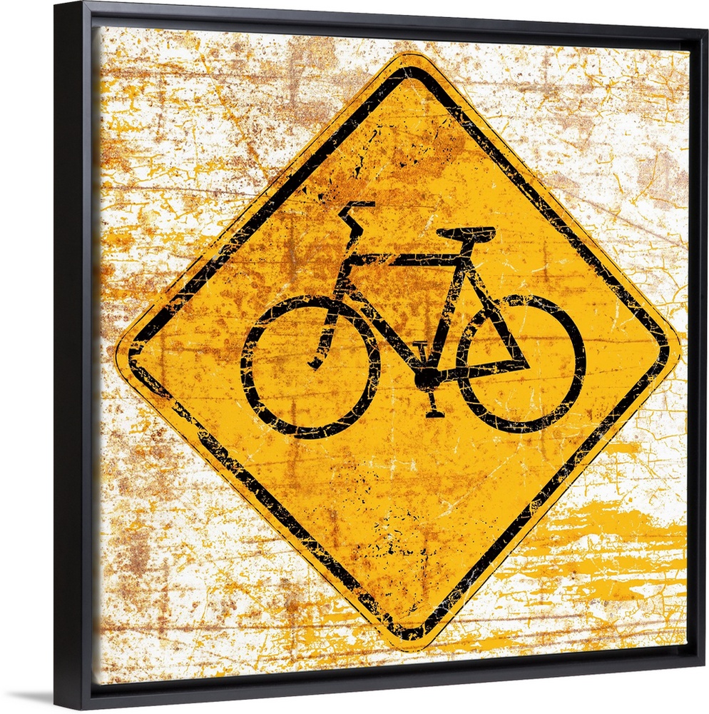 <p>A worn, distressed, cracked and rusty Bike street sign.</p>